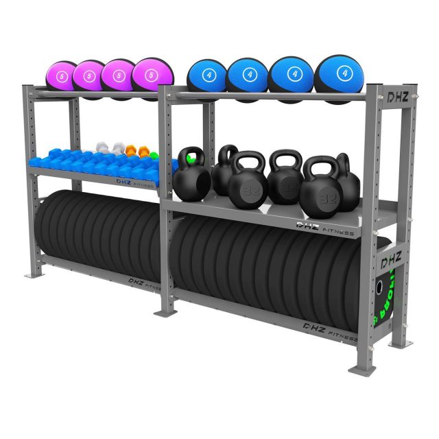 А0127 Стеллаж модульный DHZ 2200-1200 Модульные стеллажи – универсальное и простое решение по организации эффективного хранения оборудования в зале. Они отлично вписываются в интерьер любого кроссфит-зала