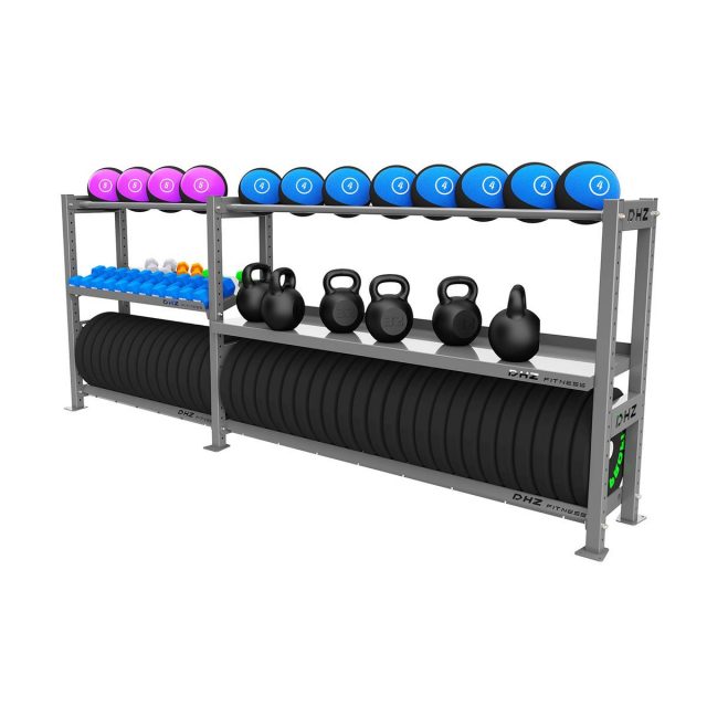 А0129 Стеллаж модульный DHZ 2900-1200 Модульные стеллажи – универсальное и простое решение по организации эффективного хранения оборудования в зале. Они отлично вписываются в интерьер любого кроссфит-зала