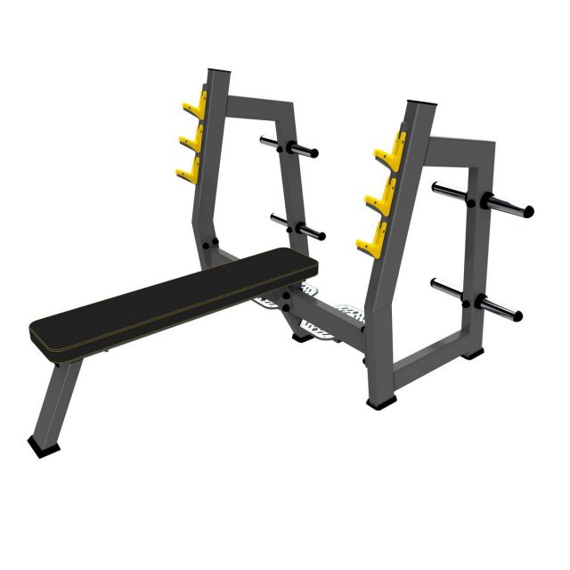 A3043М RUS Скамья-стойка для жима штанги лёжа с площадкой для страховки Классический вариант тренажера для выполнения упражнения «жим со штангой лежа». Надежные держатели для штанг, расположенные на трех уровнях, обеспечивают надежное положение снаряда во время тренировки и позволяют заниматься спортсменам различного роста. Конструкция оснащена площадкой для партнера, осуществляющего подстраховку занимающегося. Держатели для дисков дают возможность оперативно прибавлять или убавлять вес на штанге.