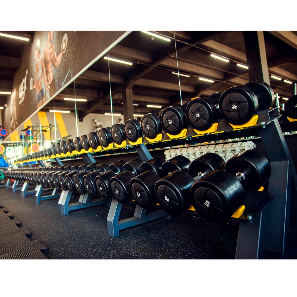 На стойке можно разместить десять пар гантелей с длиной рукояти от 120 до 160 мм, общим весом до 720 кг.