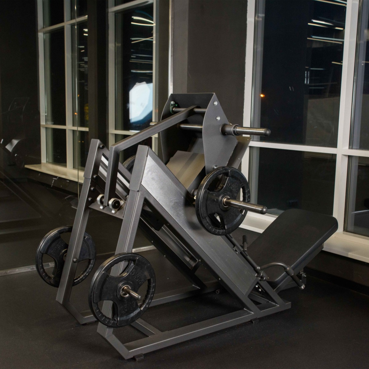 Профессиональный тренажёр для коммерческого использования A3056-AL Жим ногами под углом 45° предназначен для эффективной проработки мышц нижней части тела – квадрицепсов, бицепсов бедра, ягодичных и приводящих мышц. Конструкция обеспечивает безопасное выполнение упражнения без осевой нагрузки на позвоночник и подходит для работы с большими весами.