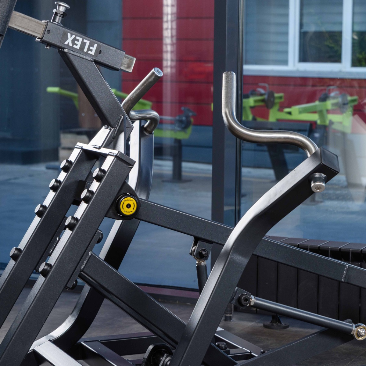 Профессиональный тренажёр для коммерческого использования A704L Тяга к поясу предназначен для изолированной проработки широчайших, ромбовидных и трапециевидных мышц спины, а также задних пучков дельтовидных и бицепсов. Конструкция с зависимыми рычагами обеспечивает плавную и согласованную траекторию движения, равномерно распределяя нагрузку между сторонами.