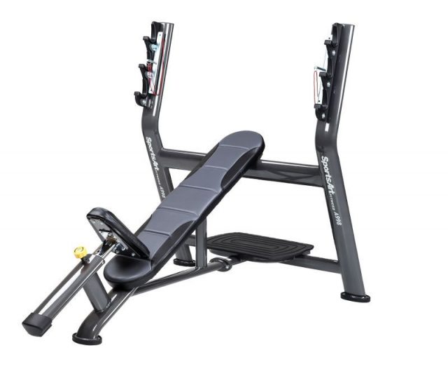Скамья для жима под углом вверх со стойками предназначена для упражнений со штангой