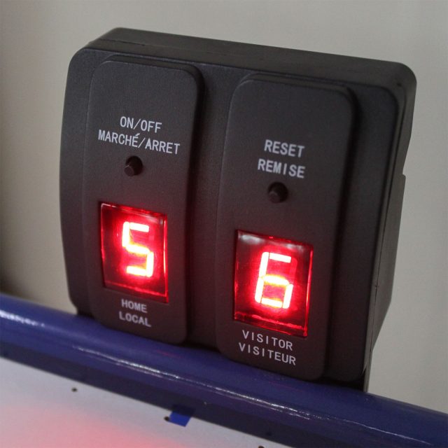 Аэрохоккей FROLUNDA оборудован электронным табло для подсчета забитых шайб. И дополнительно возле каждого игрока установлен механический счетчик.