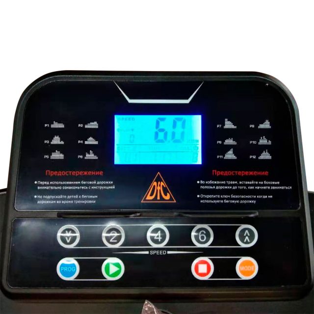 Консоль беговой дорожки оснащена LCD-дисплеем с голубой подсветкой, отображает всю необходимую пользователю информацию во время тренировки: скорость, время, дистанция, сжигаемые калории, пульс.