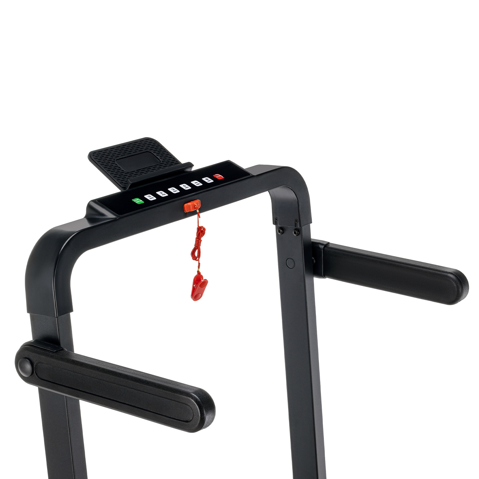 Двигатель Machtvoll мощностью 2,5 л.с. обеспечивает стабильную и бесшумную работу даже при интенсивных нагрузках. Диапазон скоростей от 1 до 12 км/ч позволяет подобрать оптимальный темп как для ходьбы, так и для бега. При сложенных поручнях максимальная скорость составляет 6 км/ч.