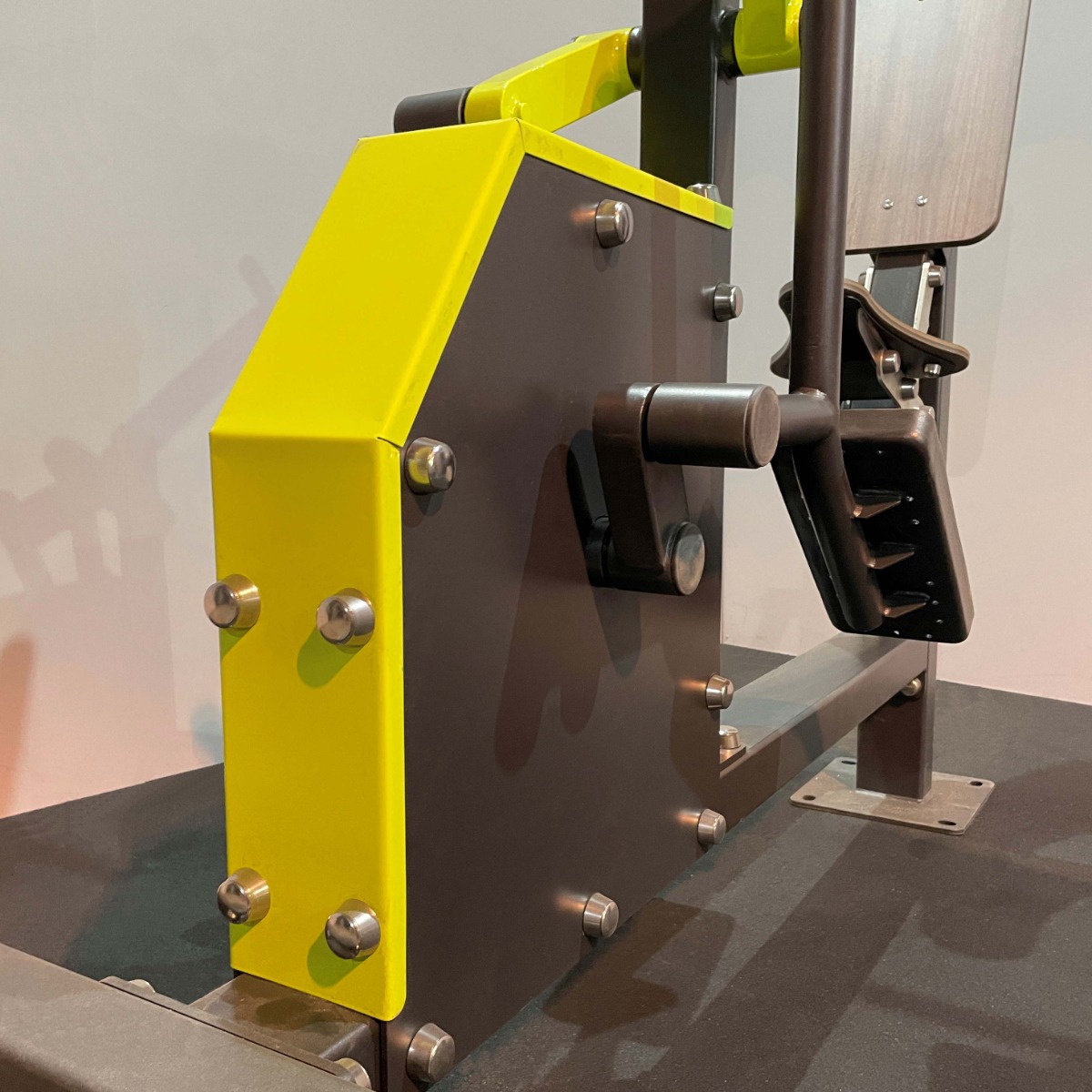 Рычаги тренажера соединены с вращающимся блоком нагрузки, изготовленным из листового металла толщиной 2 мм.