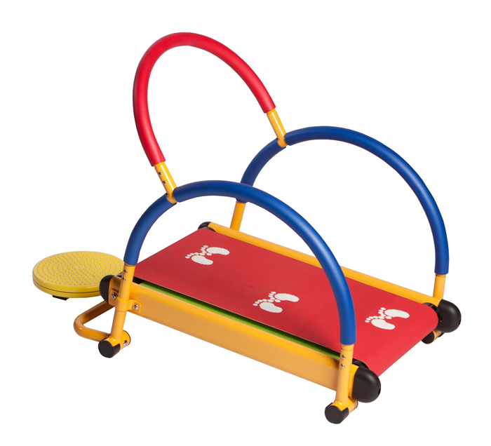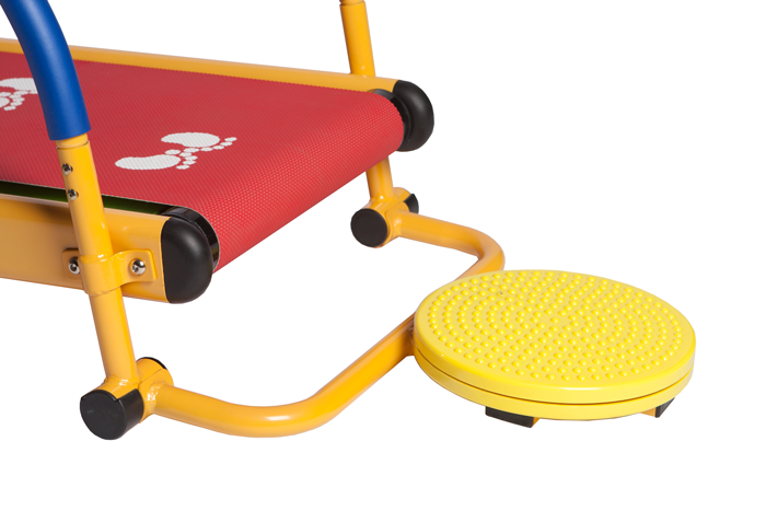 Эргономика тренажера разрабатывалась специально для детей. Тренажер обладает плотным бесшумным антистатическим полотном. Наличие диска Твист позволяет тренироваться двум детям одновременно. в качестве ручки для опоры используется ручка беговой дорожки.