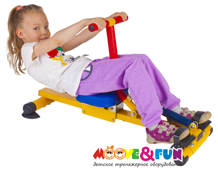 Укрепляет сердечно-сосудистую систему, позволяет активно развивать мышцы спины, ног плечевого пояса и пресса. Подвижное сиденье перемещается во время тренировки, при этом ноги надежно фиксируются лямками. Нагрузка регулируется. Прочная и устойчивая конструкция. Максимальный вес ребенка 50 кг.