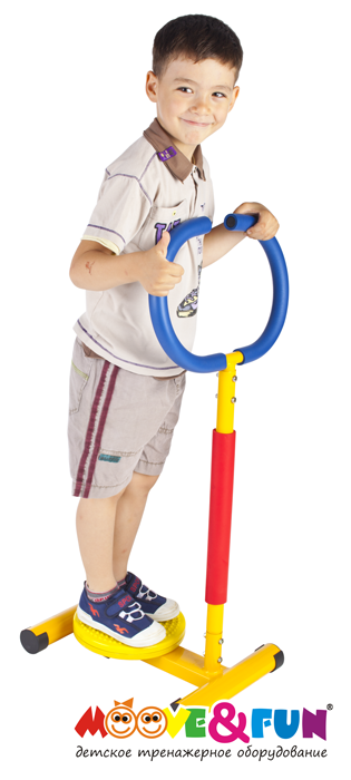 Способствует развитию координации движений, развивает мышцы ног. Ручка обеспечивает удобный хват во время тренировки. Компактная и устойчивая конструкция. Максимальный вес ребенка 50 кг.