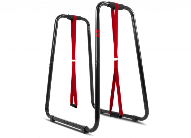 Для большего комфорта и разнообразия тренировок в комплект входят мягкие съёмные ручки и эластичные эспандеры. Дип-станция UFC подходит для тренировки в помещении и на улице
