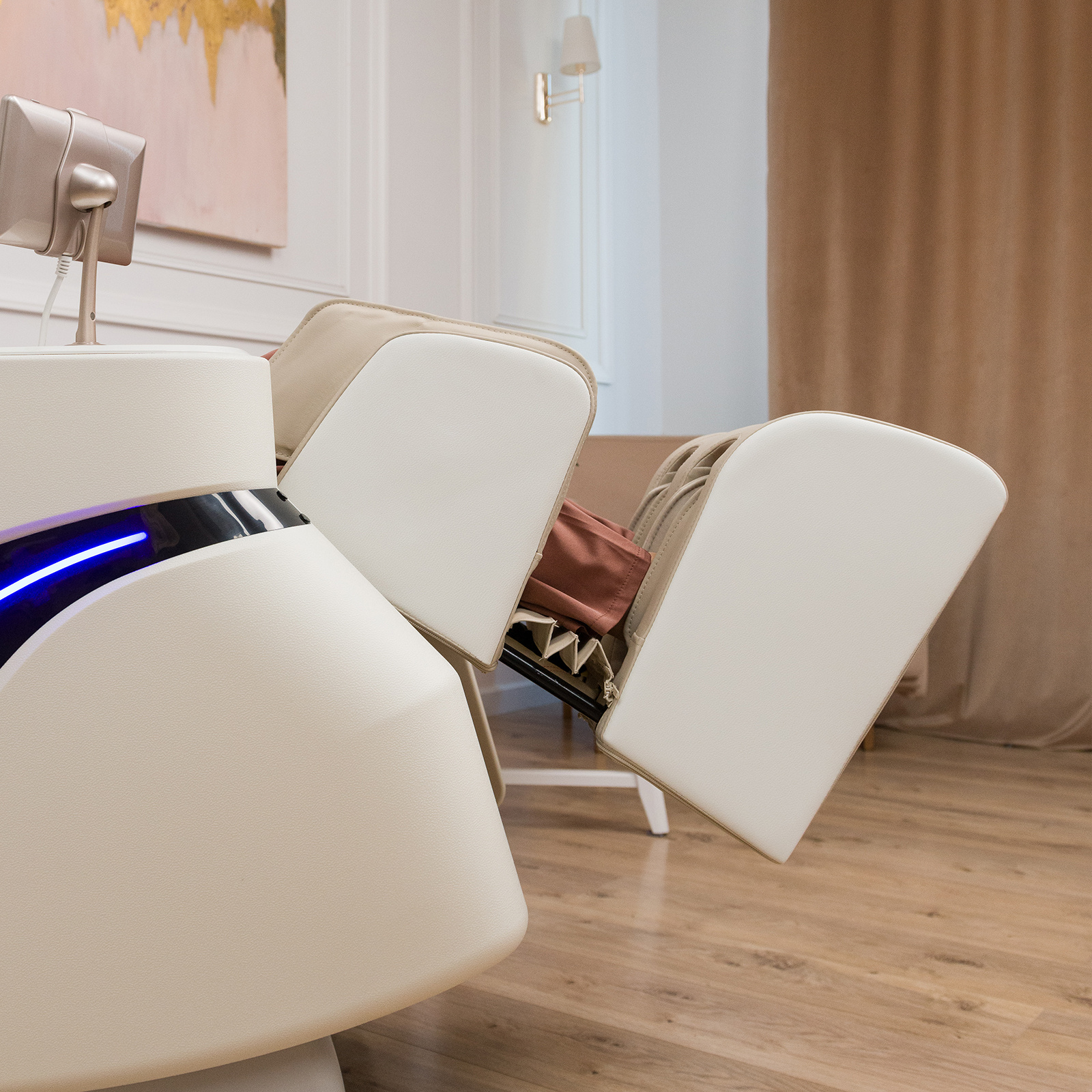 34 воздушные подушки создают воздушно-компрессионный массаж от шеи до стоп, обеспечивая лимфодренажный эффект и улучшая кровообращение. Функция Zero-G погружает пользователя в состояние невесомости, способствуя максимальному расслаблению.