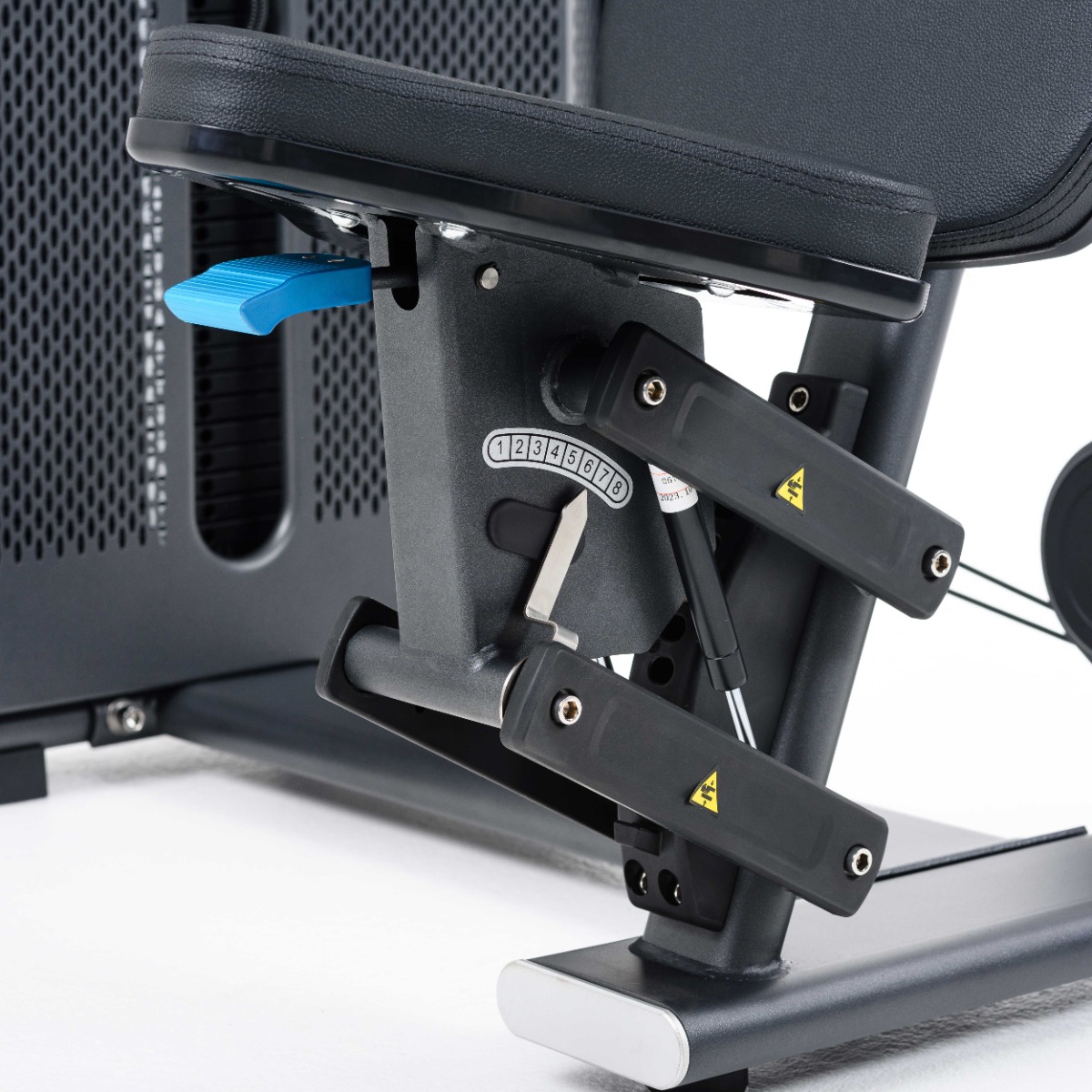 Прорезь в защитном кожухе грузоблока для доступа к регулировке нагрузки шлифованная с завальцованными внутрь гранями по всему периметру для безопасного доступа к весовому стеку и обеспечения дополнительной жёсткости рамы грузоблока.