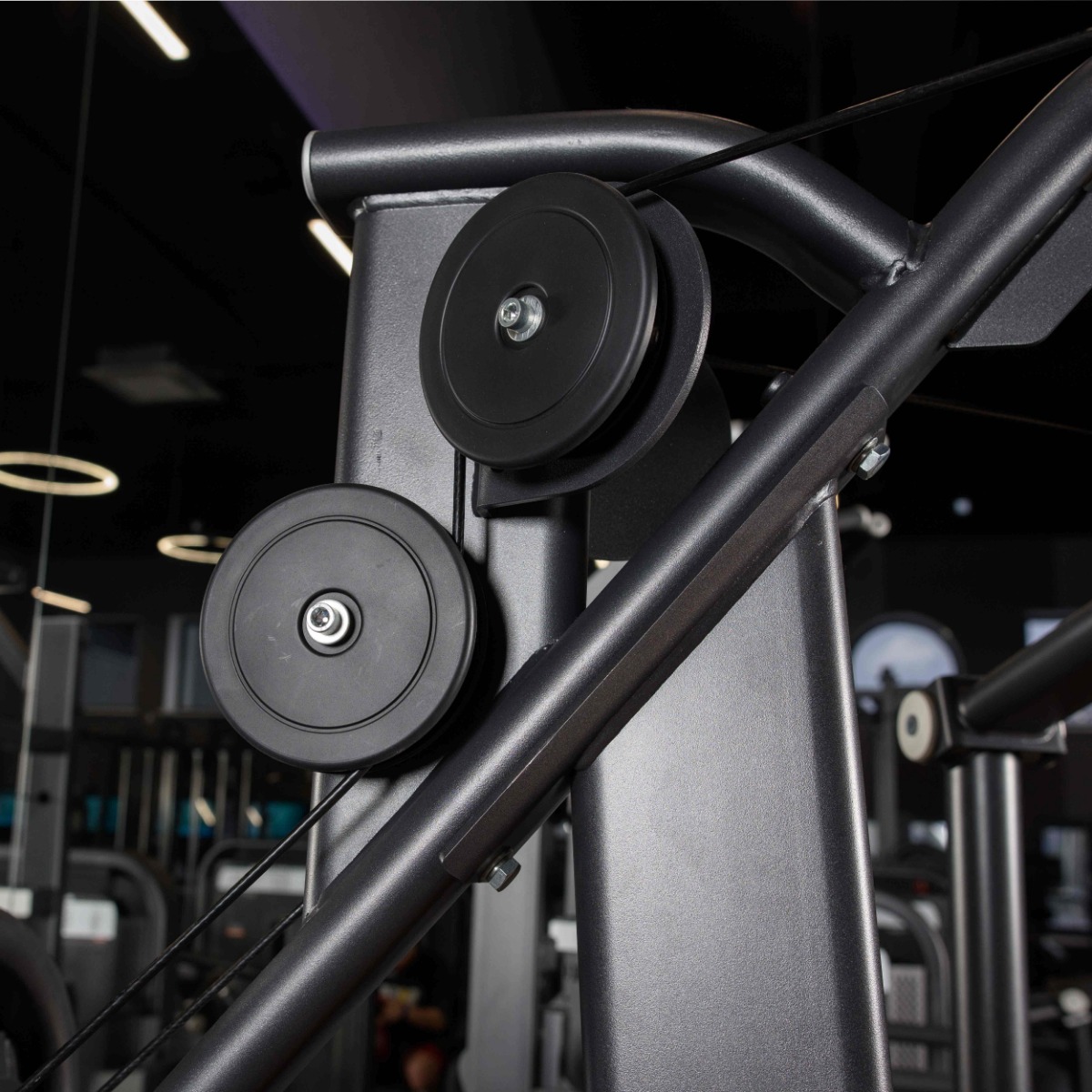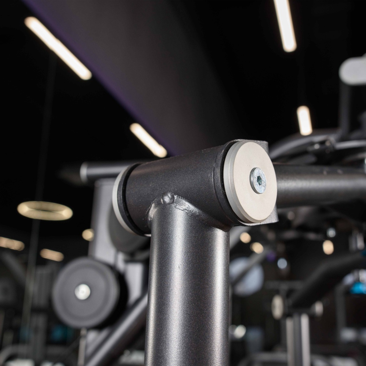 Прорезь в защитном кожухе грузоблока для доступа к регулировке нагрузки шлифованная с завальцованными внутрь гранями по всему периметру для безопасного доступа к весовому стеку и обеспечения дополнительной жёсткости рамы грузоблока.