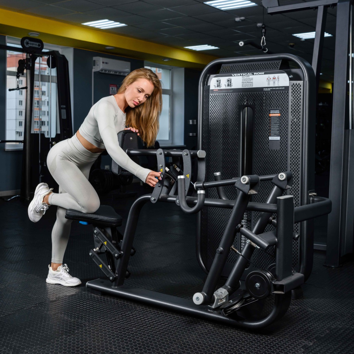 Профессиональный тренажер для коммерческого использования E7034 Гребная тяга с упором на грудь предназначен для изолирующих упражнений на широчайшие мышцы спины.