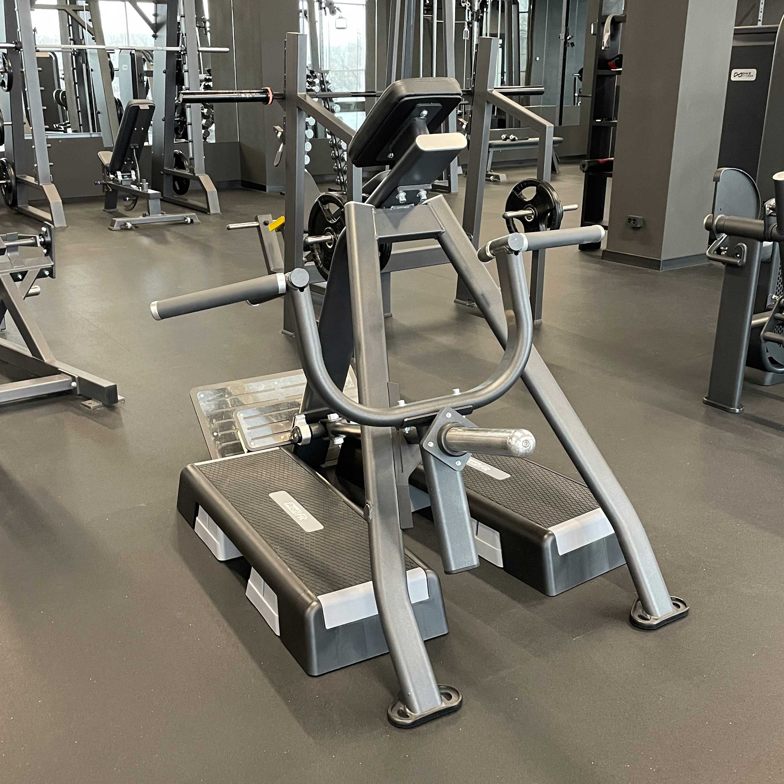 Профессиональный тренажер для коммерческого использования E7061 Т-образная тяга с упором в наклоне предназначен для проработки мышц спины и рук – широчайших мышц спины, дельтовидных, трапециевидных, ромбовидных, больших круглых мышц.
