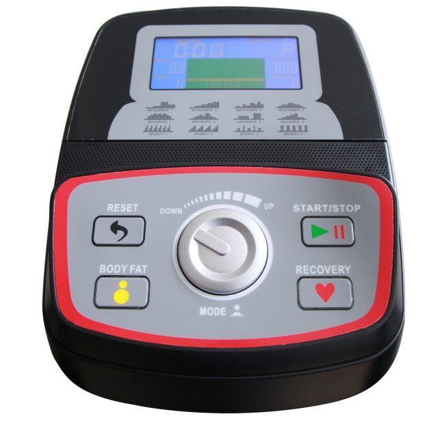 Среднегабаритный эллиптический тренажер для домашнего использования с бесшумной магнитной системой нагружения с электроприводом. Оснащен датчиками измерения сердечного ритма, расположенными на рукоятках. Тренажер также имеет держатель для планшета и транспортировочные ролики для легкого перемещения после тренировки. Запатентованная система двустороннего вращение маховика придает дополнительную плавность и более правильный ход педалей при занятии.