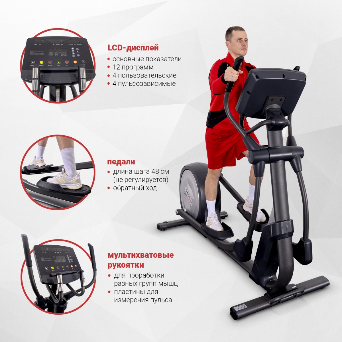 Самогенерирующий механизм не требует подключения к сети. Большие педали, покрытые нескользящим материалом, позволяют комфортно тренироваться пользователям весом до 150 кг.Область применения: профессиональная;; Длина шага: 48 см, не регулируется;Количество уровней нагрузки: 40;Максимальный вес пользователя: 150 кг; Консоль/дисплей: LCD-дисплей; Размеры товара в сборе: