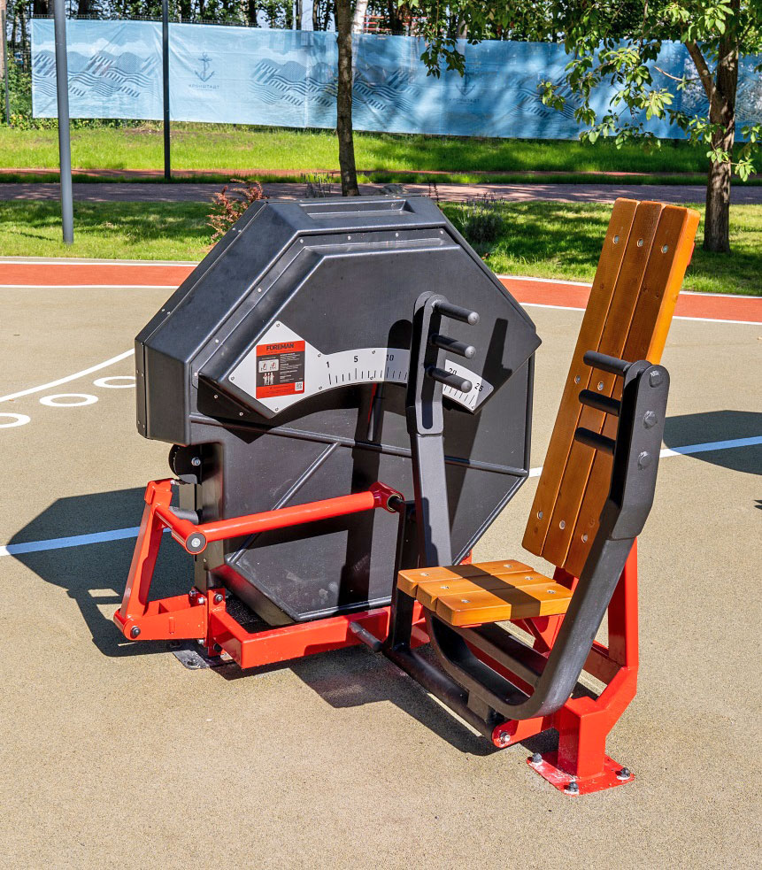 - Сидение и другие элементы с которыми взаимодействует пользователь выполнены из дерева для комфорта при выполнении упражнений в разное время года