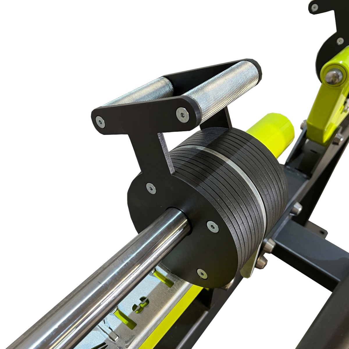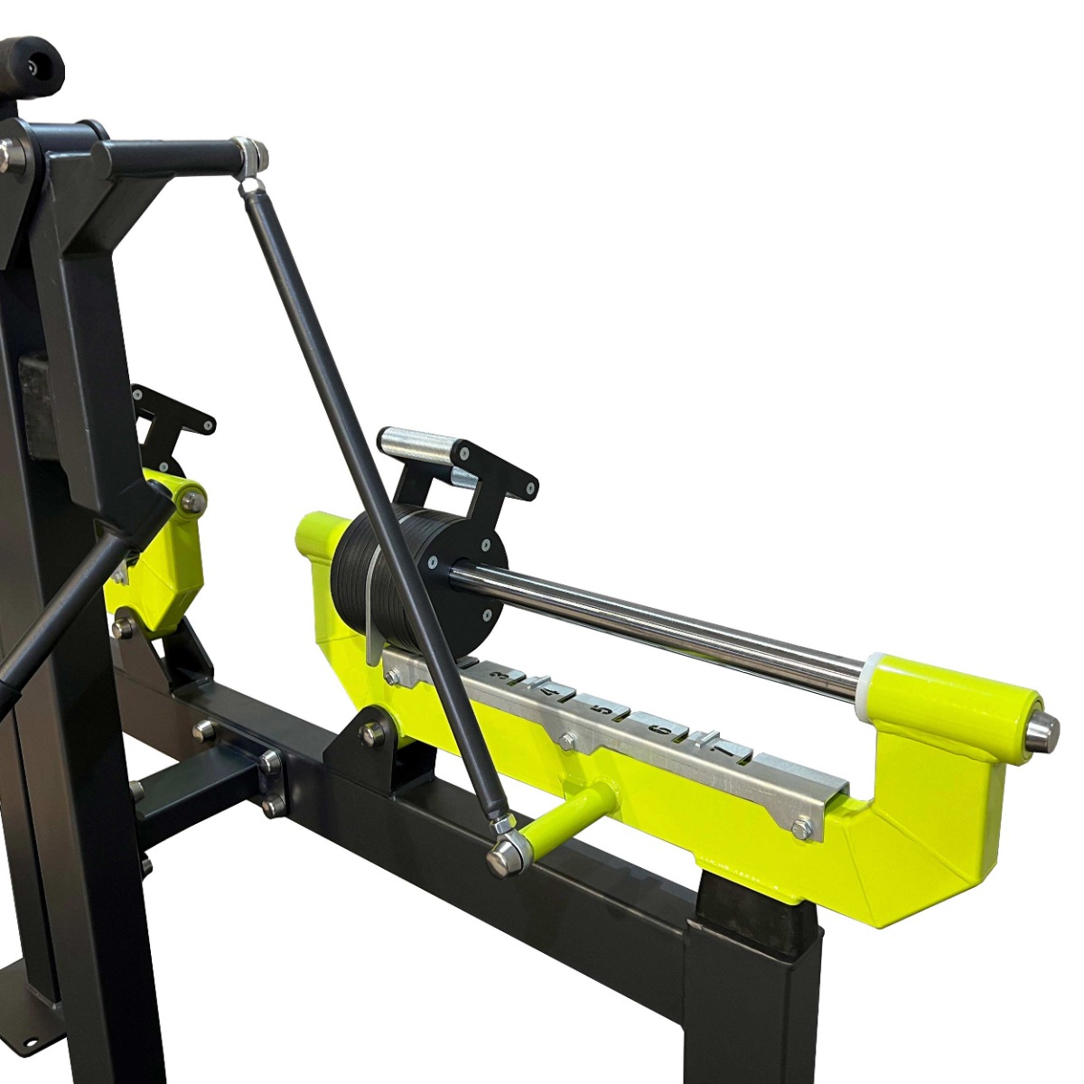 Стартовый вес на один подвижный рычаг 25 кг с шагом 3,5 кг. Плавное ступенчатое увеличение нагрузки доступно в 7 положениях.