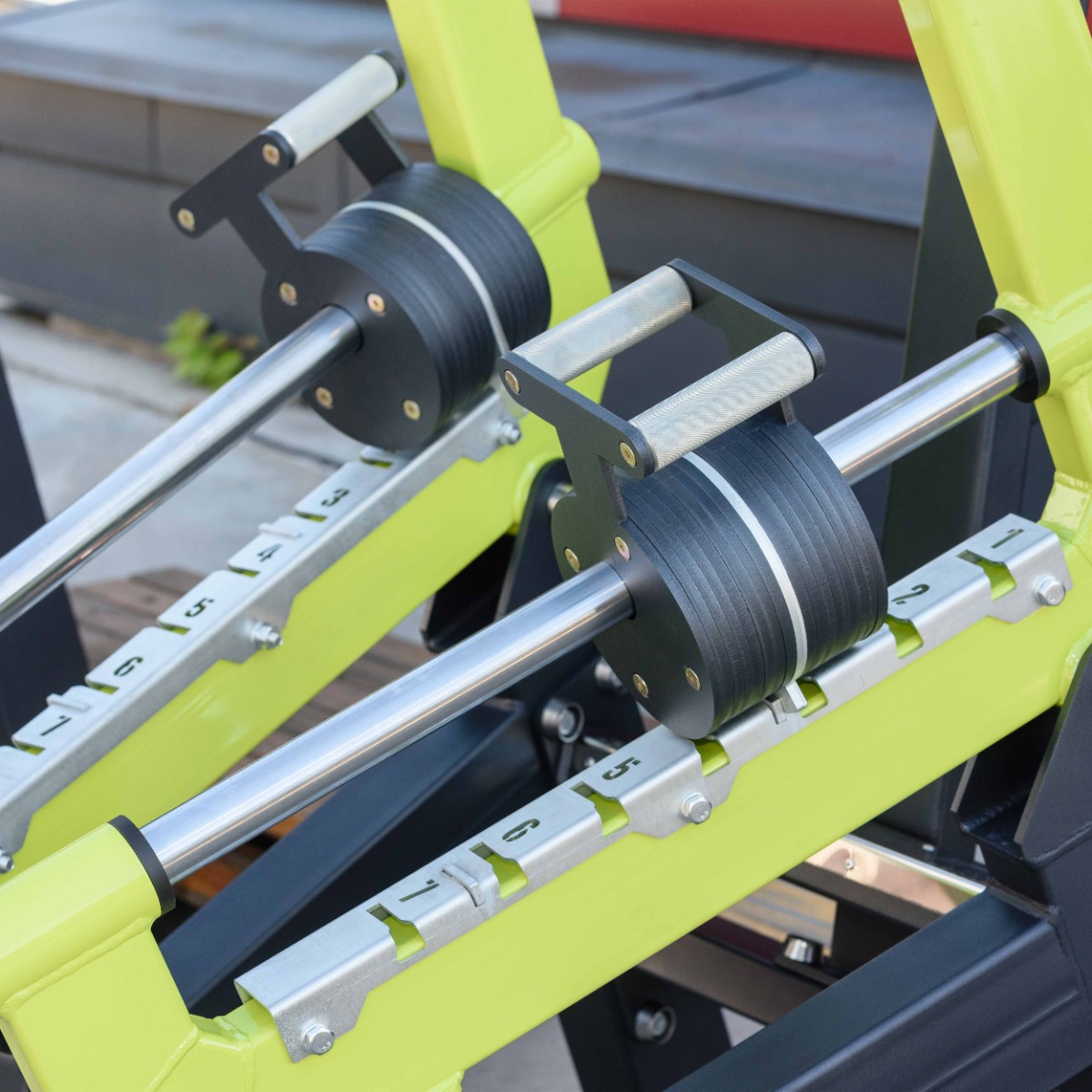 Стартовый вес на один подвижный рычаг 25 кг с шагом 2 кг. Плавное ступенчатое увеличение нагрузки доступно в 7 положениях.