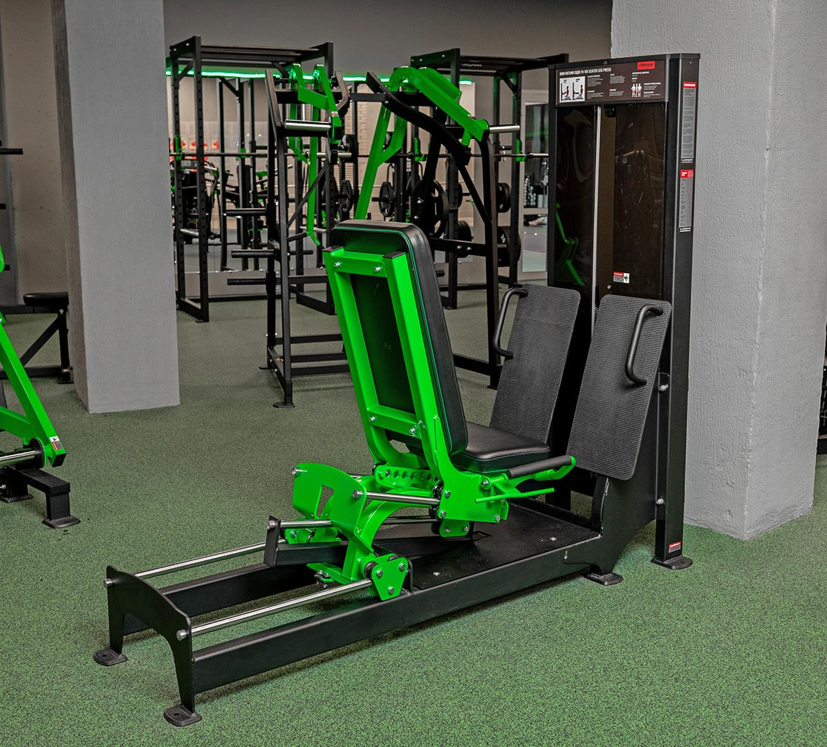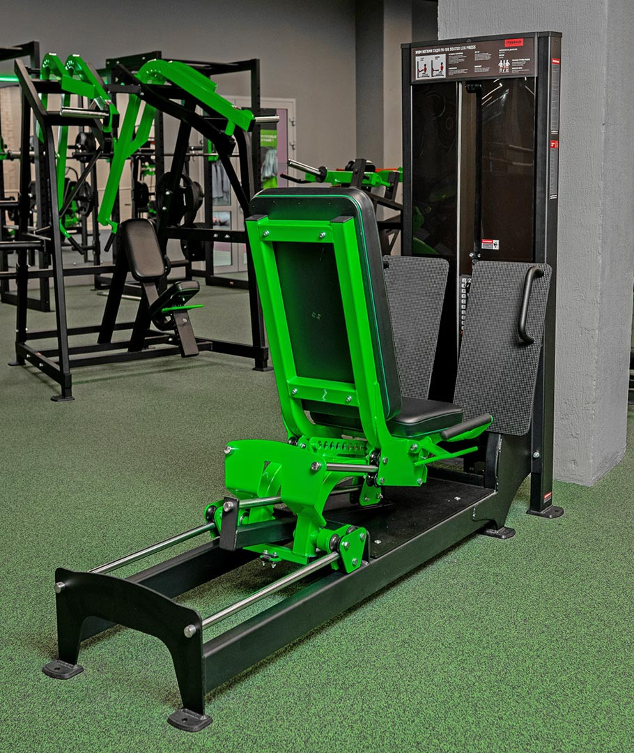Силовой тренажер FN-108 предназначен для выполнения жима ногами от себя в положении сидя, направленного на развитие четырехглавой мышцы бедра, большой ягодичной мышцы, двухглавой мышцы бедра.