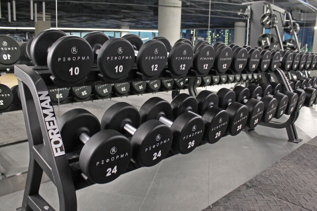 Для удобства хранения гантелей каждый ярус оснащен резиновыми подложками.