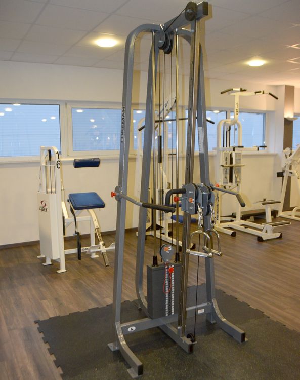 Тренажер представляет собой колонну перекрестной тяги, дополненную второй тягой.