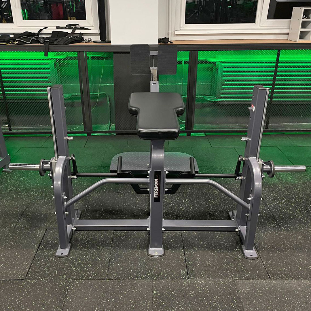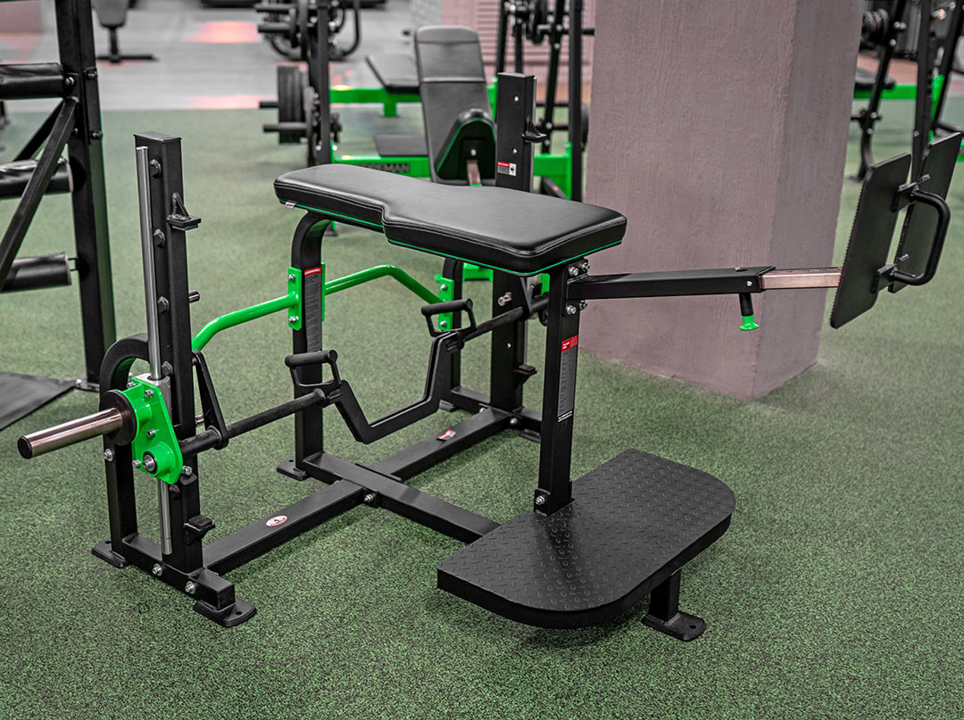 Нестандартная форма грифа и специальная форма скамьи позволяют выполнять упражнение в максимальной амплитуде, а с помощью регулируемого упора для ног обеспечивается оптимальное положение для пользователей любого роста.