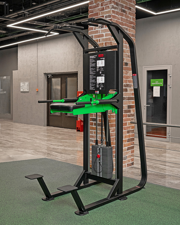 - Откидываемая платформа позволяет выполнять подтягивания и отжимания на брусьях без использования противовеса.