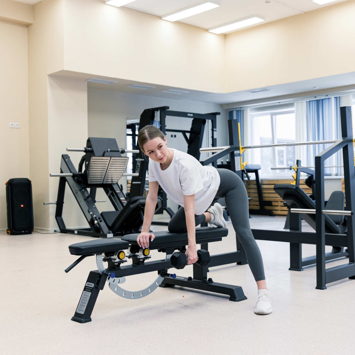 Шестиугольные грузы гантели, обеспечивающие устойчивое положение на любой поверхности, изготовлены из цельного металла.