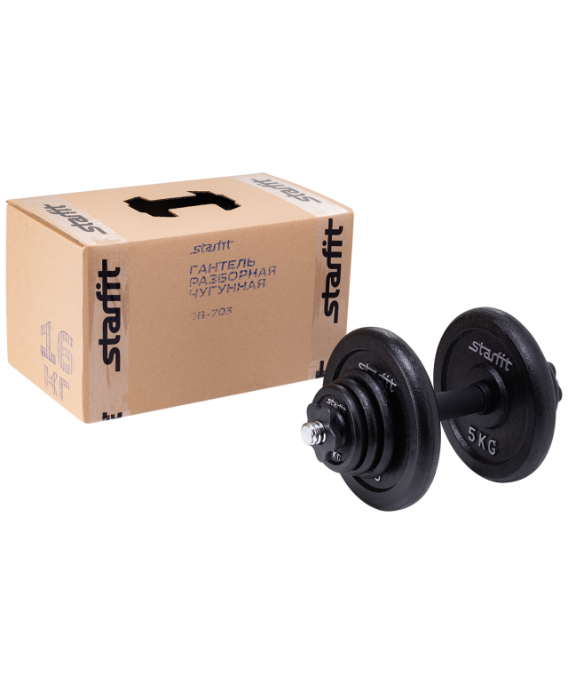 Гантель разборная чугунная DB-703 состоит из стального грифа с пластиковым хватом и чугунных дисков разного веса. Нескользящая поверхность грифа на месте хвата повышает безопасность тренировок. Широкий шаг резьбы позволяет за считанные секунды поменять вес. Гриф комплектуется пластиковыми замками, которые надежно фиксируют диски на грифе.