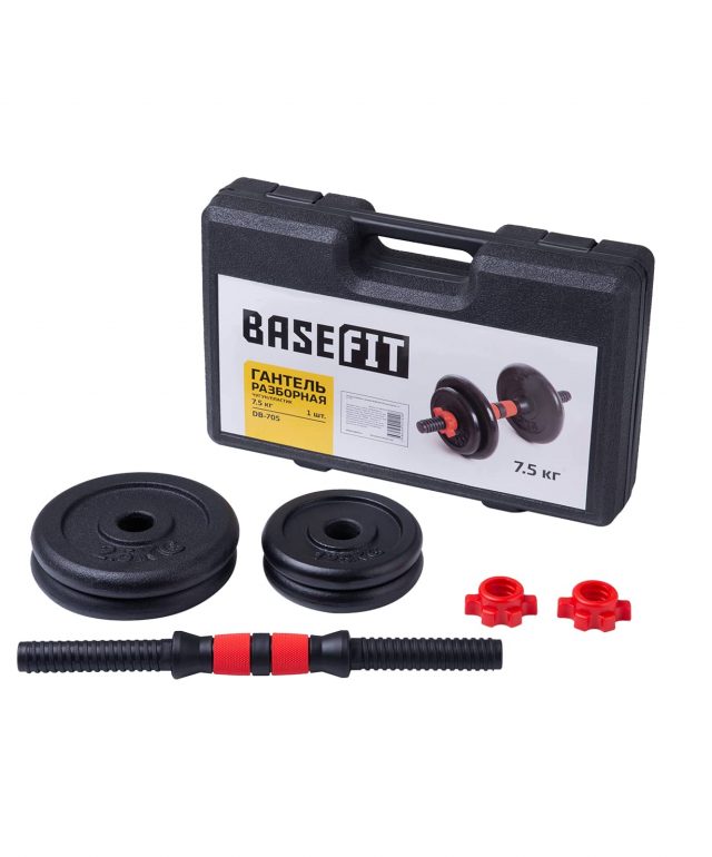 Гантель разборная в чемодане DB-705 от бренда Basefit поможет вам держать себя в форме, даже если вы не посещаете спортзал. Для выполнения упражнений с гантелями не нужно много места, а разборная конструкция позволит вам самостоятельно регулировать вес инвентаря и выбирать подходящую нагрузку. Расширяющийся к центру диаметр грифа делает хват более удобным анатомически, что создает более высокую эффективность тренировки. Чемодан с рукоятью позволит вам не только удобно хранить инвентарь, но и брать его с собой.