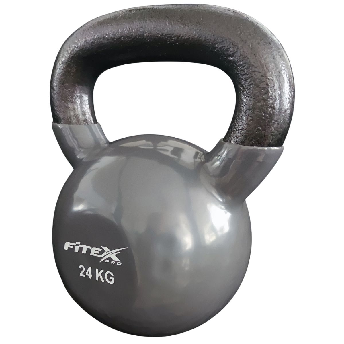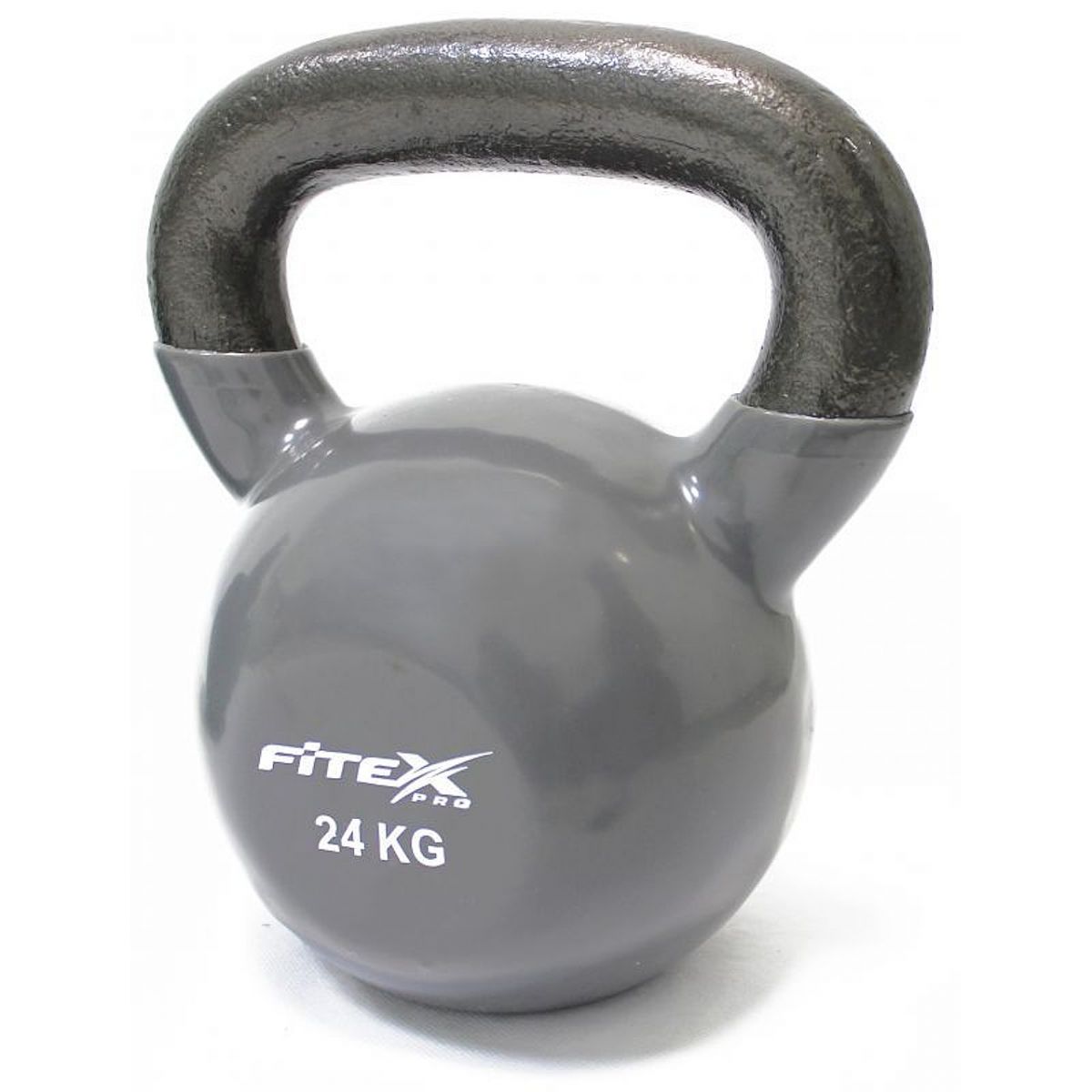 Гиря FITEX PRO сделана из чугуна и имеет плотное виниловое покрытие, которое не окрашивает стены и пол, снизит шум и убережет кожу рук от раздражения.