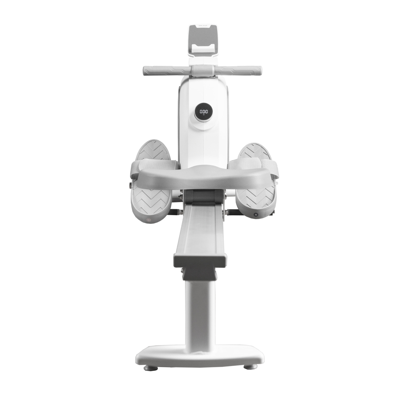 Тренажер отличается повышенной прочностью — рама выдерживает до 130 кг. Компактная конструкция и транспортировочные ролики делают его перемещение и хранение максимально удобным. Стильный современный дизайн в белом цвете Silent Snow™ органично впишется в любое пространство.