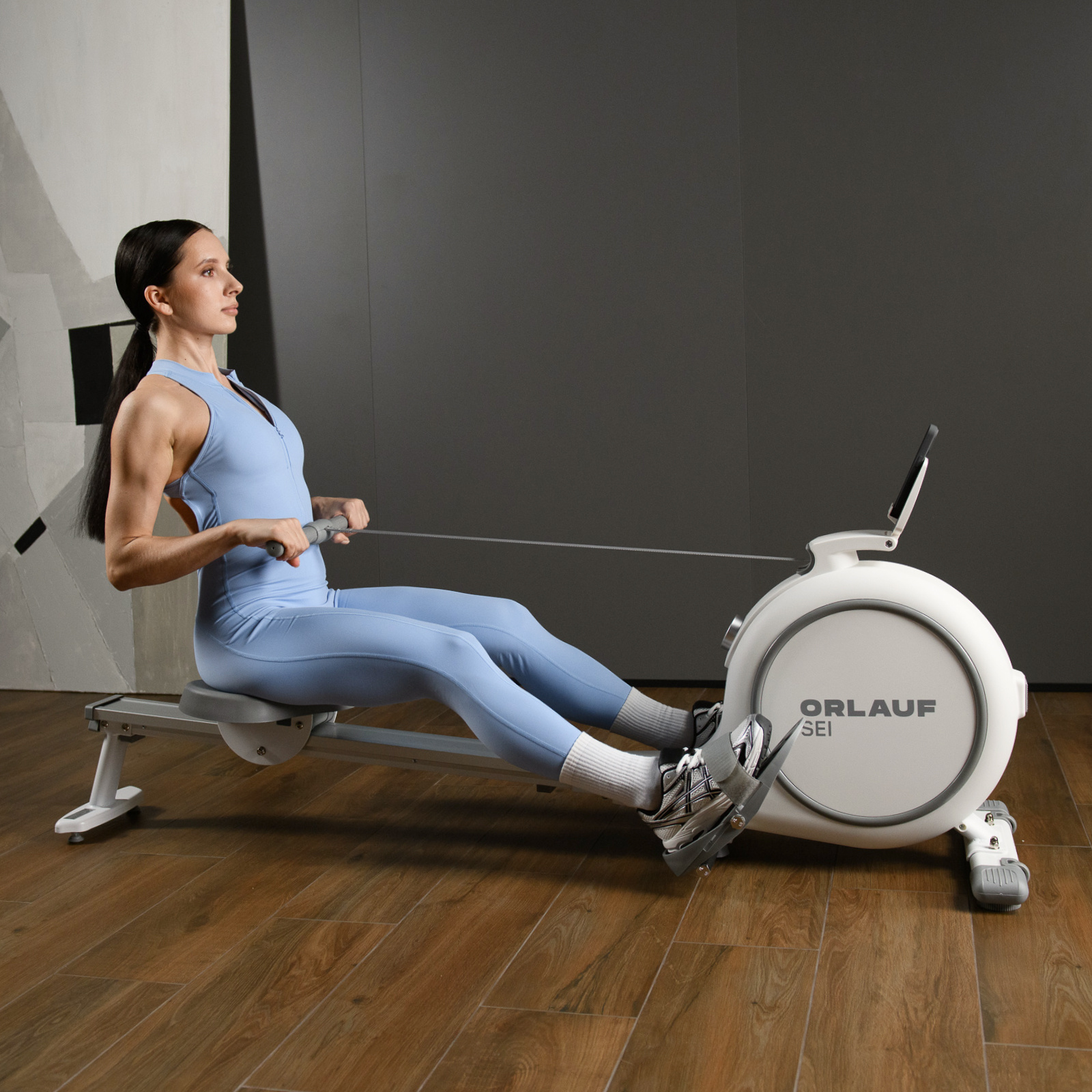 Гребной тренажер Orlauf Sei — это ваш идеальный партнер для полноценных тренировок, не выходя из дома. Он сочетает кардио и силовую нагрузку, одновременно задействуя до 85% мышц тела: ноги, спину, руки, плечевой пояс и пресс. Электромагнитная система Vectra™ с 32 уровнями сопротивления и плавный ход маховика Roterra™ 5 кг позволяют точно дозировать нагрузку, делая тренировки эффективными и безопасными для суставов.