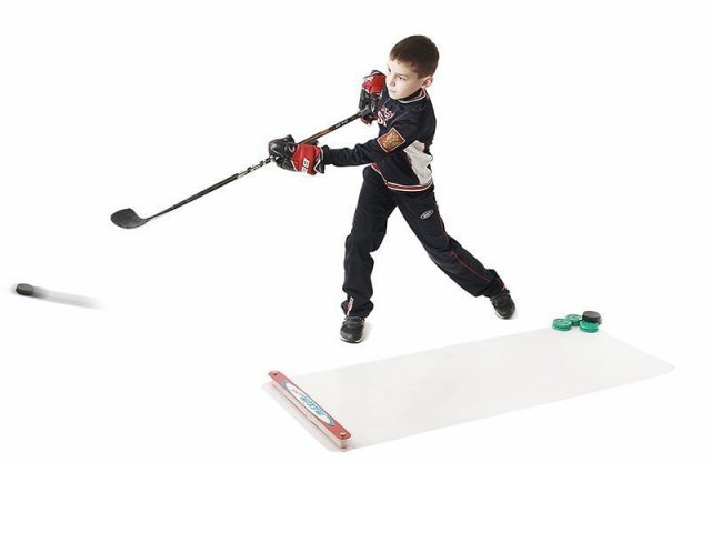 Данный тренажер используется для отработки бросков, паса, щелчков, владения клюшкой, развития кистей. Данный синтетический лед не деформируется, выдерживает сильные удары, легко сгибается в любом направлении. Малогабаритен и рекомендован для тренировок на улице, для отработки броска.