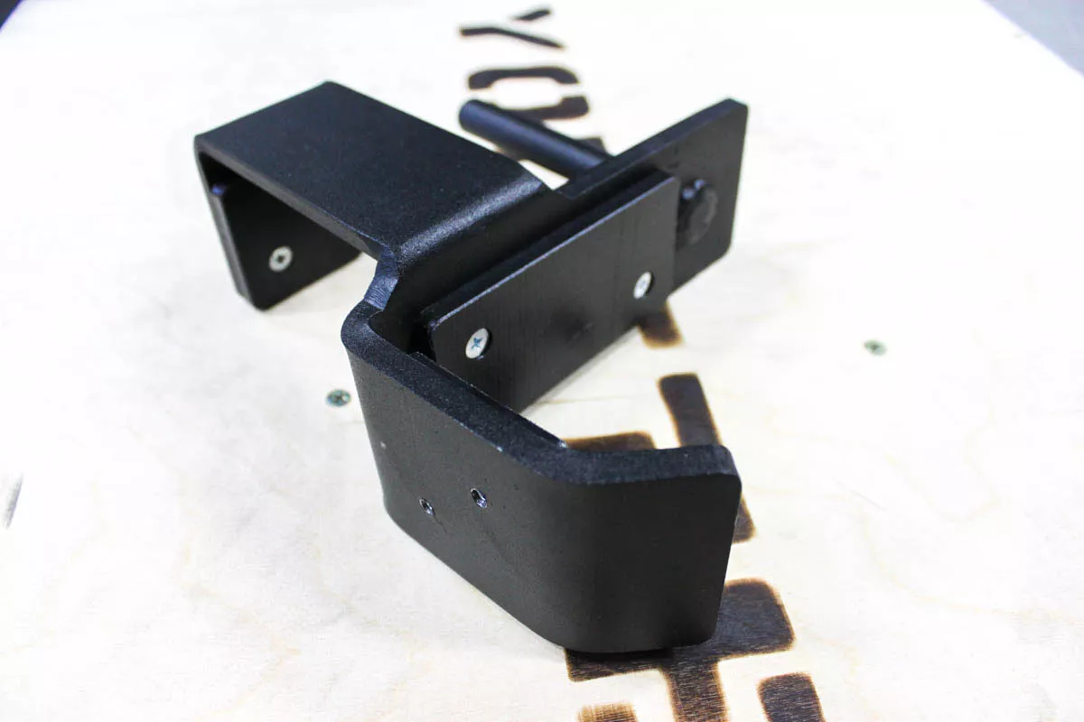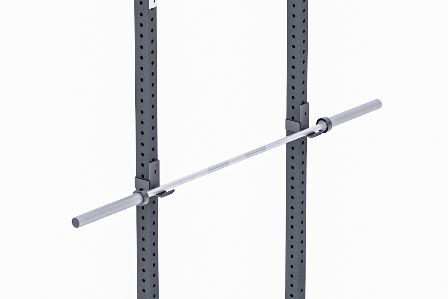 Для защиты насечки грифа, в местах касания с крюком, мы используем специальный пластик, который убережет гриф от повреждений. J-крюки изготовлены из стали толщиной 6мм и выдерживают статическую нагрузку до 150кг на каждый крюк. Однако, стоит помнить, что они предназначены для удержания штанги, поэтому бросать её на них не рекомендуется.