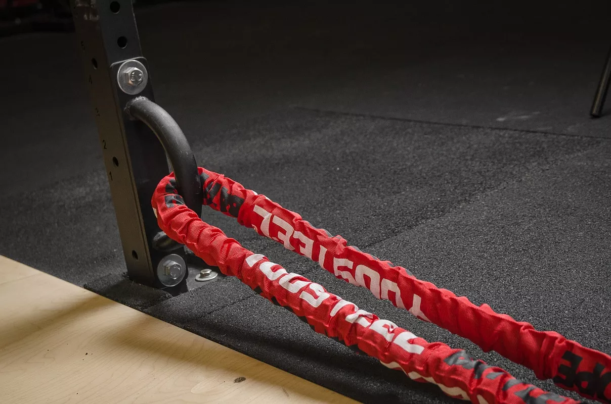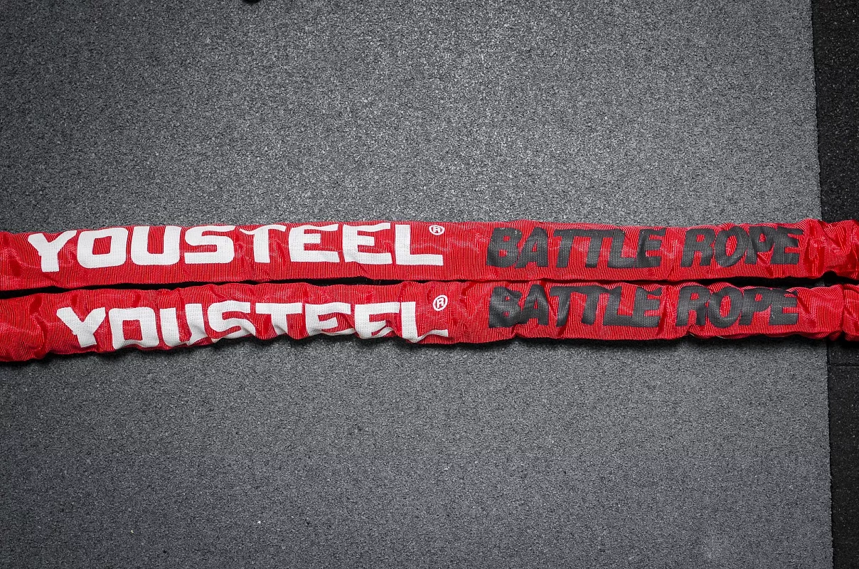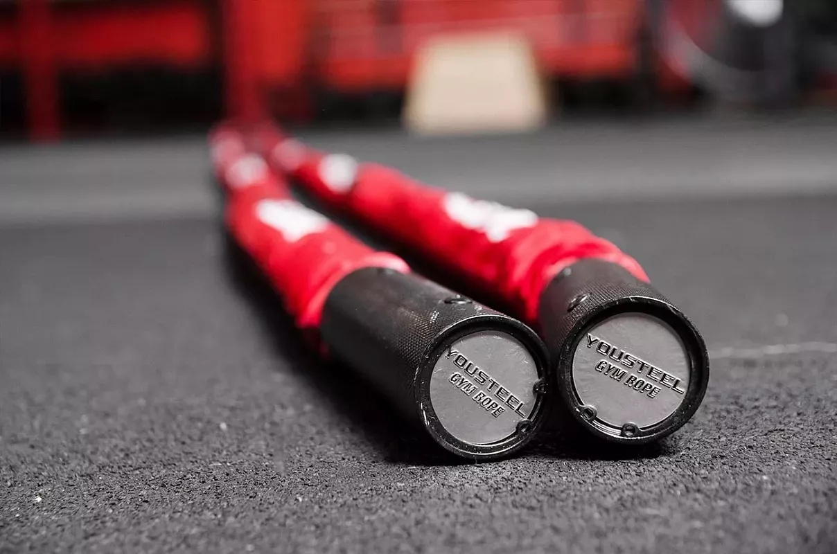 Канат спрятан в кожух, который защищает изделие от внешних воздействий. В комплекте идет дополнительная черная накладка на чехол, которая предотвращает его преждевременный износ, при работе каната со скобой. Рукояти сделаны из металла и не отвалятся со временем как на аналогичных изделиях, где сделали обычную термоусадку под ладони. Также рукоять имеет насечку, которая предотвратит выскальзывание из ладоней во время интенсивной работы. Диаметр рукоятей: 38мм.