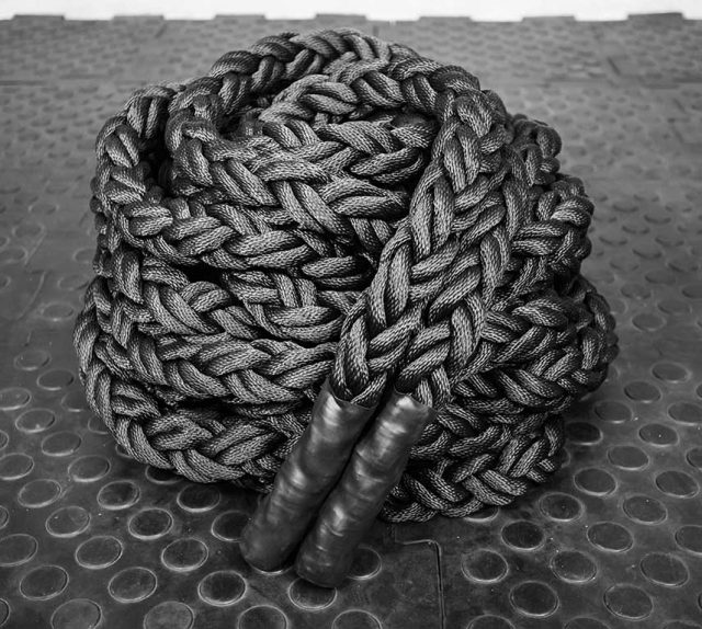 Тренировочный (боевой) канат пришел в функциональный тренинг из смешанных единоборств. Так же он широко применяется при подготовке боксеров и самбистов. Канат применяют при выполнении целого ряда упражнений для тренировки общей и силовой выносливости, взрывной силы мышц и силы хвата у спортсменов. Именно поэтому его популярность в кроссфите вполне заслужена. Использование каната открывает перед атлетами новые возможности для совершенствования спортивной формы. Он может использоваться во время тренировок как в закрытых залах, так и вне помещений. Купить тренировочный канат для кроссфит тренировок вы можете в нашем магазине.
