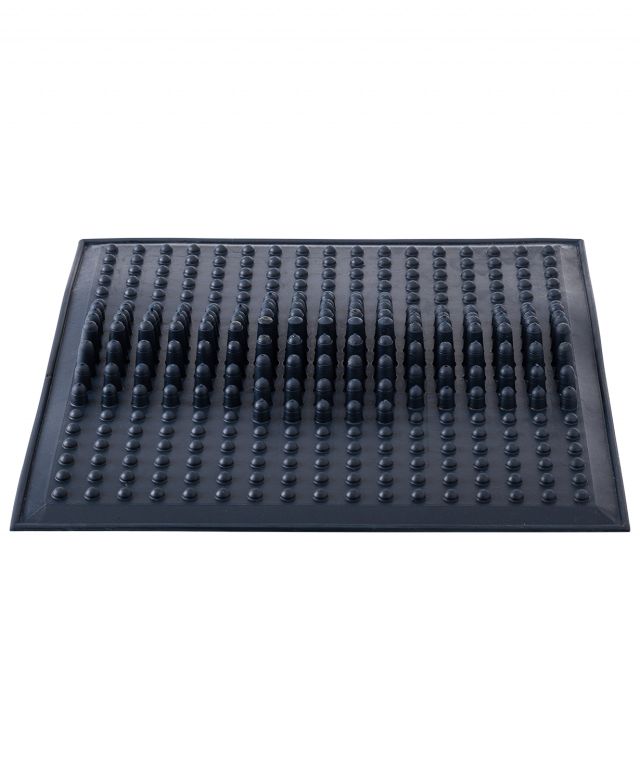Резиновый массажный коврик рекомендован для профилактики и лечения плоскостопия, варикозного расширения вен, пяточных шпор, общеоздоровительного массажа стоп, укрепления связочно-мышечного аппарата голеностопного сустава. Коврик изготовлен из резины таким образом, что имеет плотные резиновые выступы различных размеров, благодаря которым можно делать массаж стоп.