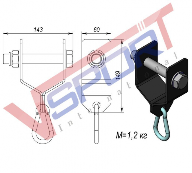 Многофункциональный кронштейн для крепления с карабином. Крепление к основной. Сталь №3, порошковое окрашивание.