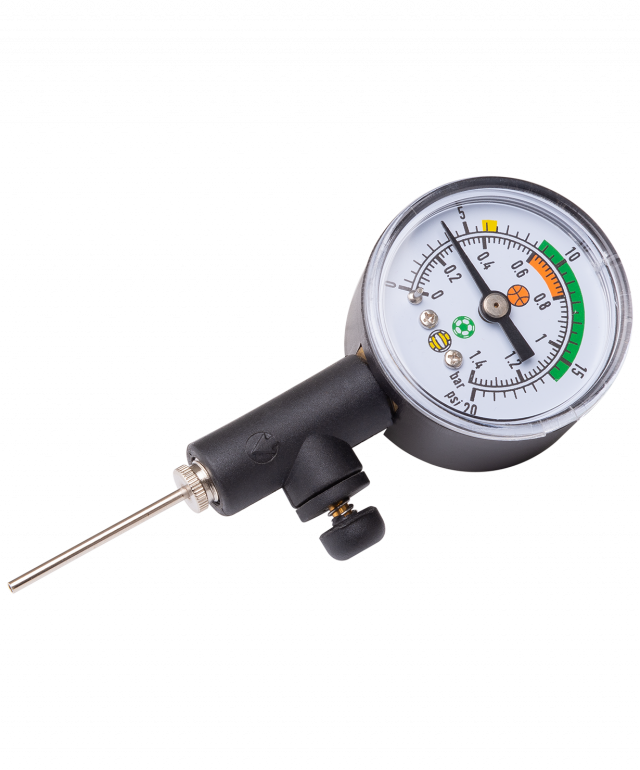 Удобный и компактный механический манометр Jögel для визуального контроля давления в мячах. В комплекте игла. Подходит для футбольного, волейбольного, баскетбольного мячей. Шкала измерения в барах.