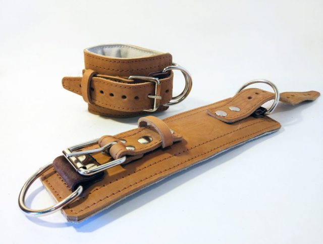 Манжеты для ног в бежевом цвете. Применяются для занятий на блочных тренажерах. Просим обратить внимание: цена указана за пару. Собственная разработка Fitsafe. Манжеты имеют два полукольца, закрепленных таким образом, что нагрузка распределяется равномерно по всему изделию. Полукольца крепятся за счет кожи и копрона: такое сочетание имеет максимальный запас срока службы. Изделие не давит ногу благодаря толстой мягкой подушке со внутренней стороны а изнаночная мягкая часть манжет обшита бархатистой подкладочной кожей.Силовая нагрузка приходится также на натуральную кожу, но прочную и толстую (ту же, что используется для поясов штангиста). Для креплении на ноге не используются липучки, как на большинстве аналогов: изделия оснащены мощными пряжками и ремешками. Усиленная модель манжет на ноги для кроссовера может быть использована как для проработки ягодичных мышц, так и для бицепса бедра. Также возможны другие варианты применения и для рук, когда нужно не задействовать кисти (делать это лучше под руководством опытного тренера). Аксессуар прекрасно подойдет как в личное пользование, так и для общего доступа в тренажерном зале.