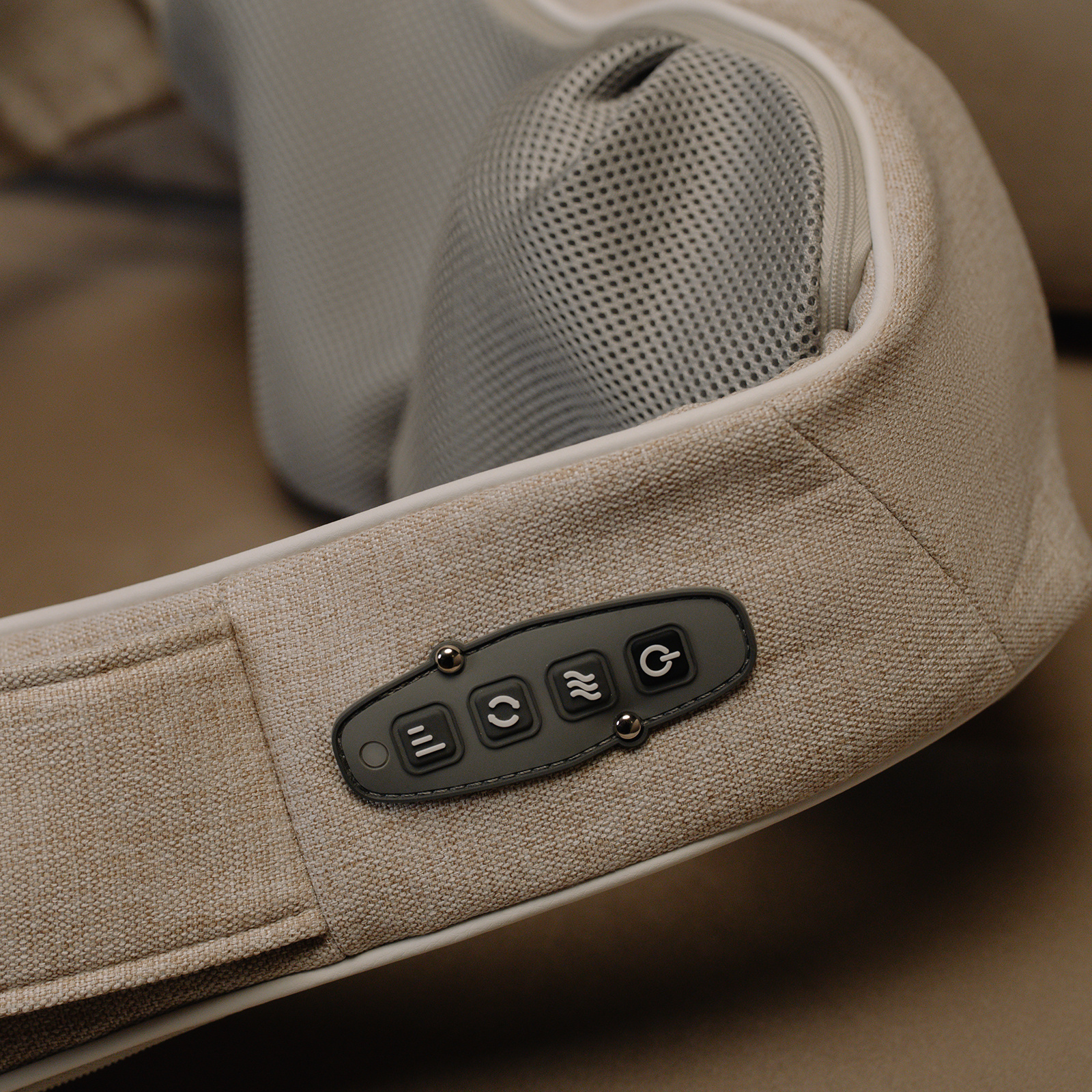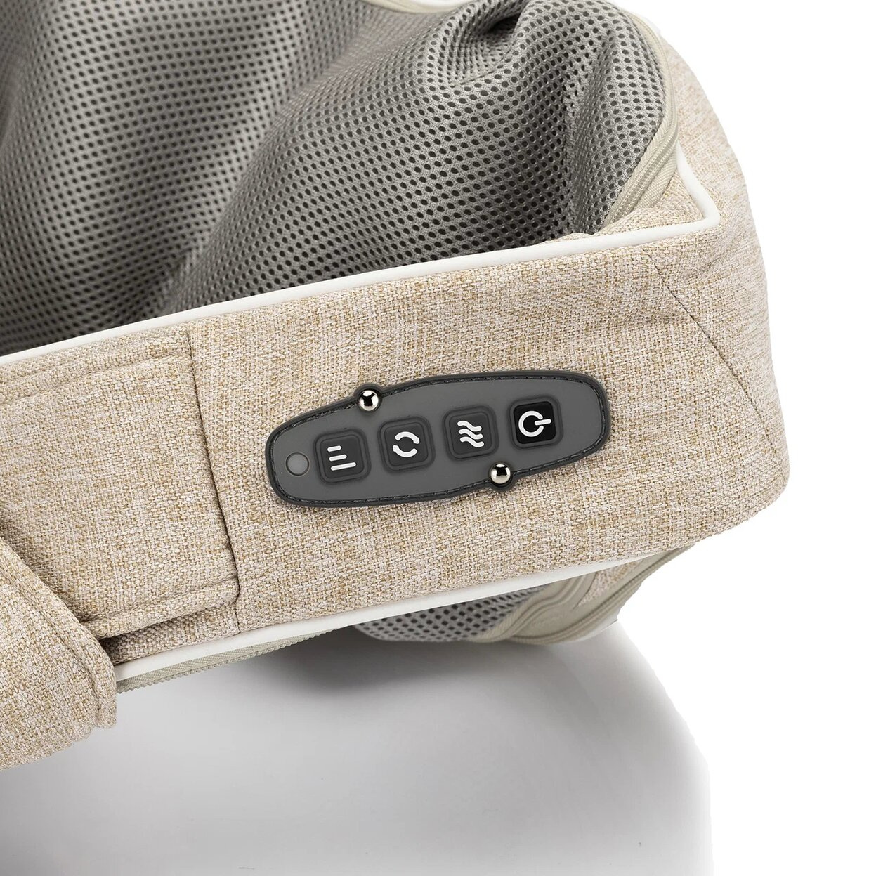 Для управления предусмотрена миниатюрная панель сбоку на одной из петель для рук. С помощью кнопок на панели управления можно менять интенсивность работы роликов и направление их вращения, а также включать прогрев.