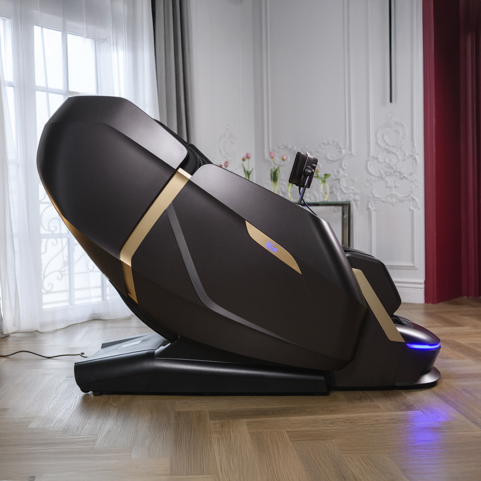 Электрическое массажное кресло для дома Orlauf Angel сочетает передовые технологии массажа и стильный элемент интерьера. Изысканный дизайн и премиальная отделка LuxusLeder из долговечных, легко очищаемых материалов превращают его в настоящее украшение любого помещения.