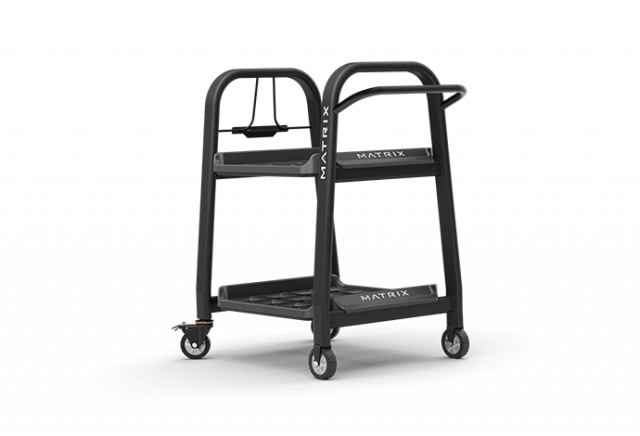 Храните все используемые аксессуары для тренировки в одном месте — на передвижной стойке с двумя полками.