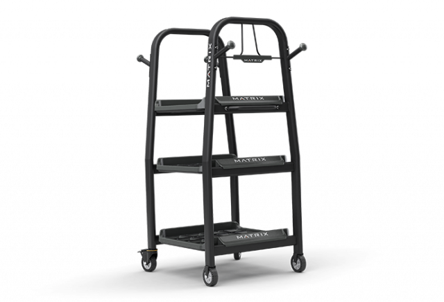 Храните все используемые аксессуары для тренировки в одном месте — на передвижной стойке с тремя полками.