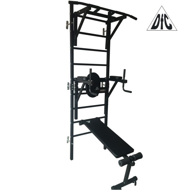 На шведской стенке DFC VT-7006 можно выполнять подтягивания тремя хватами, упражнения на брусьях и на скамье с валиками.
