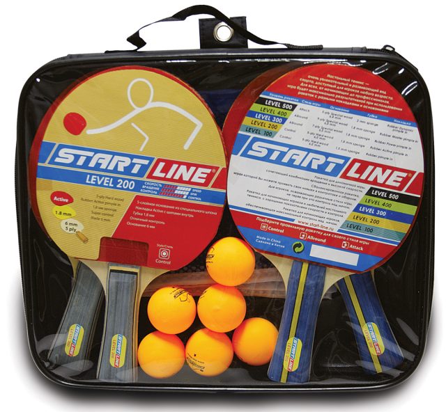 Набор start line: 4 Ракетки level 200, 6 Мячей club select, Сетка с креплением, упаковано в сумку на молнии с ручкой